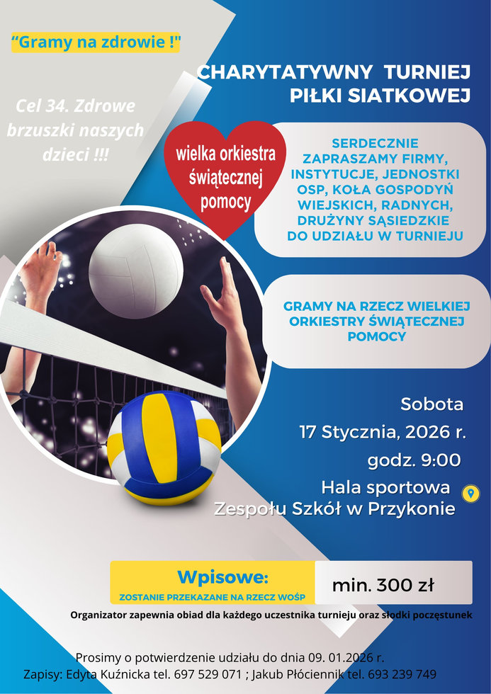 Serdecznie zapraszamy firmy, instytucje, jednostki OSP, koła gospodyń wiejskich, radnych, drużyny sąsiedzkie do udziału w Charytatywnym Turnieju Piłki Siatkowej.