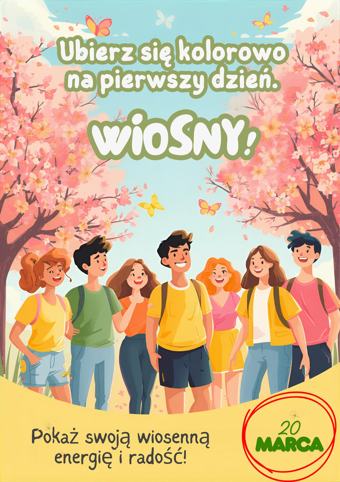 Zachęcamy wszystkich uczniów do wspólnego przywitania wiosny już 20 marca (piątek) poprzez ubranie się w kolorowe stroje.